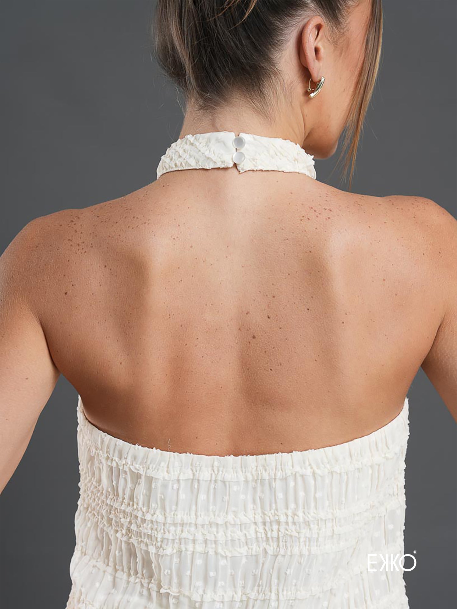 Lomi is a halter neck top crafted in textured seersucker with a soft inner lining for added comfort. Designed with a delicate back neck button closure, it offers a flattering, easy silhouette that’s perfect for effortless casual dressing.