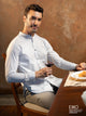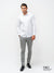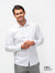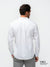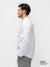 A crisp white long-sleeve made from 100% cotton sateen, this shirt features subtle blue contrast fabric in the inner cuffs and collar band. A refined touch for those who appreciate timeless style with a modern edge.