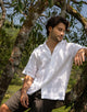 This oversized short-sleeve shirt effortlessly blends comfort and sophistication. Crafted from a breathable Linen-Tencel blend, it features a crisp white and blue print that exudes a fresh, contemporary vibe. The sharp lapel collar and relaxed fit offer a refined yet laid-back look, making it ideal for both casual and semi-formal occasions. Perfect for warmer weather, this shirt ensures you stay cool and stylish with minimal effort, creating a go-to piece for any modern wardrobe.