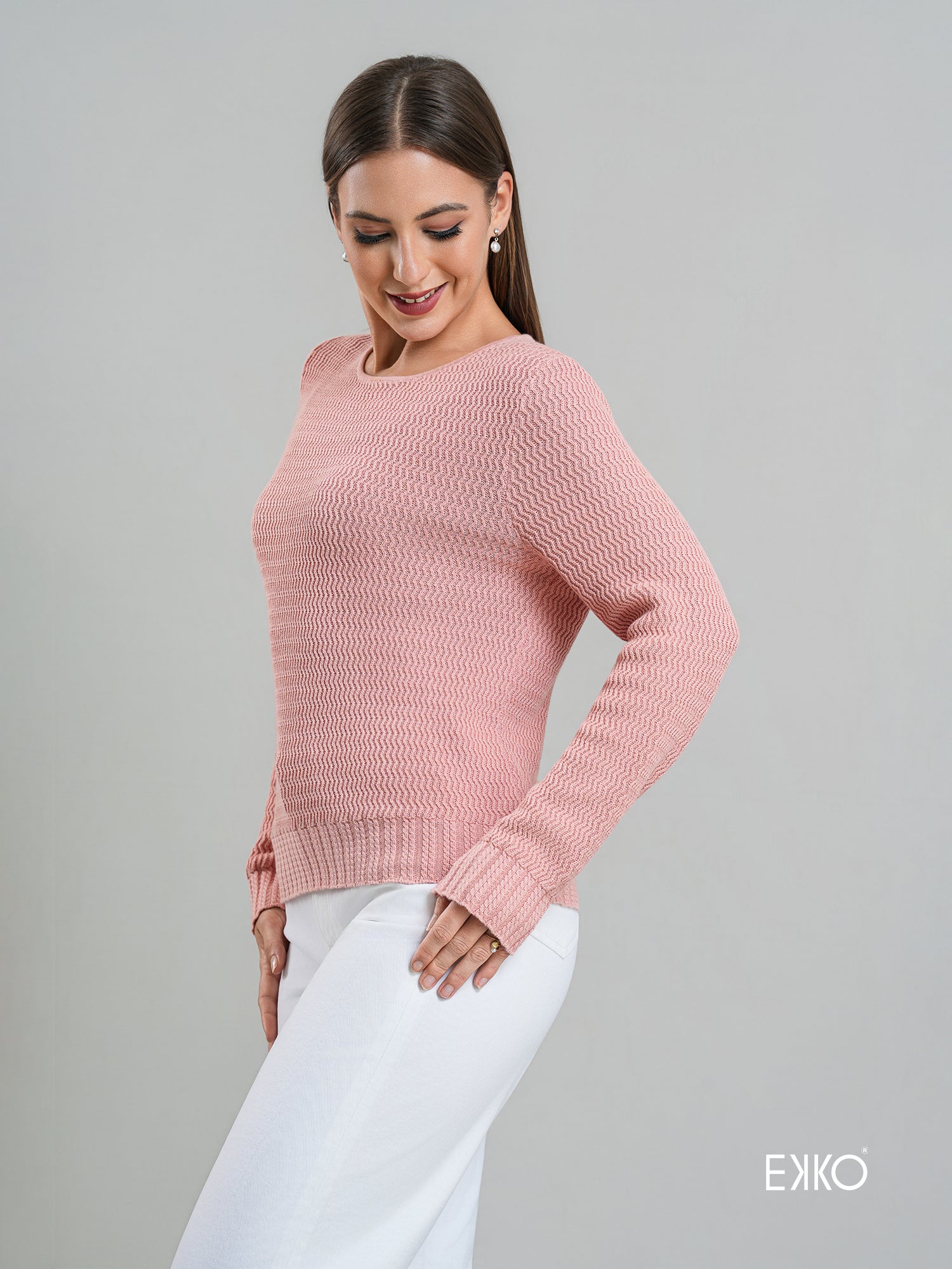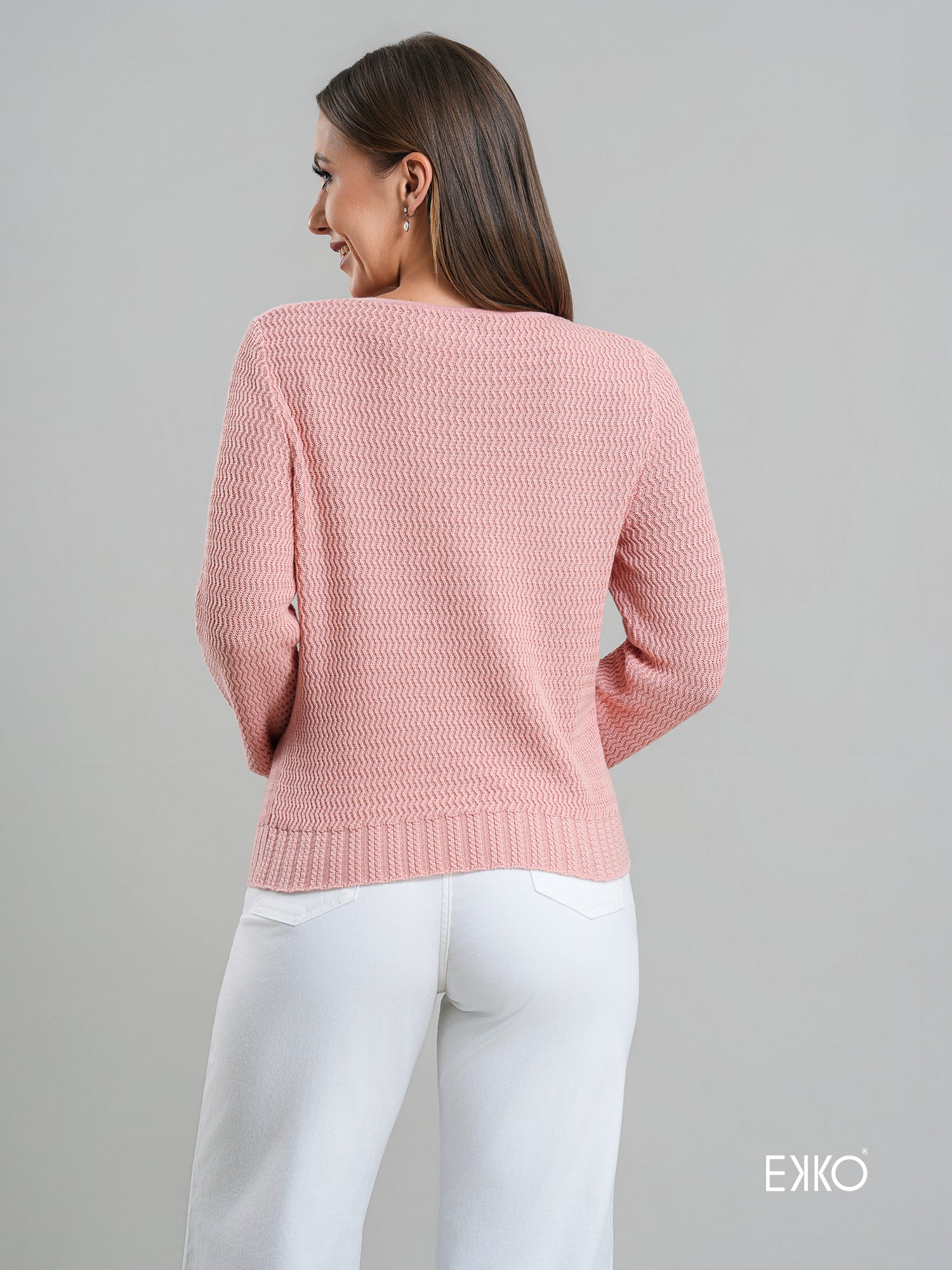 A comfy women’s sweater crafted from 100% cotton, featuring a classic crew neckline and long sleeves. Designed in a soft pink shade with a regular fit for easy, everyday wear.
