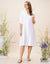 A crisp white midi dress featuring a mandarin collar and button-down front, with dropped long sleeves and tab cuffs. This smart casual design offers a clean, sophisticated silhouette perfect for both work and relaxed evening outings.