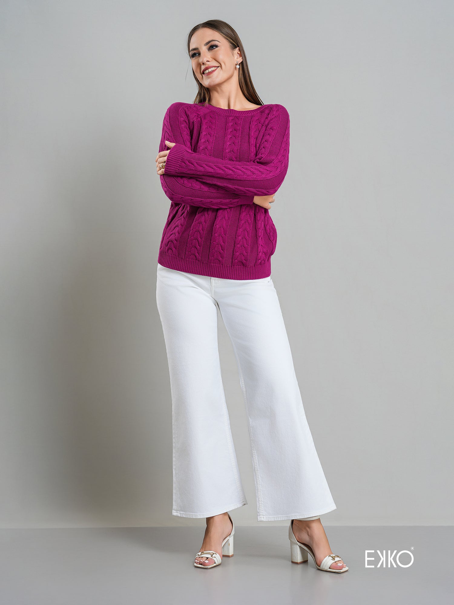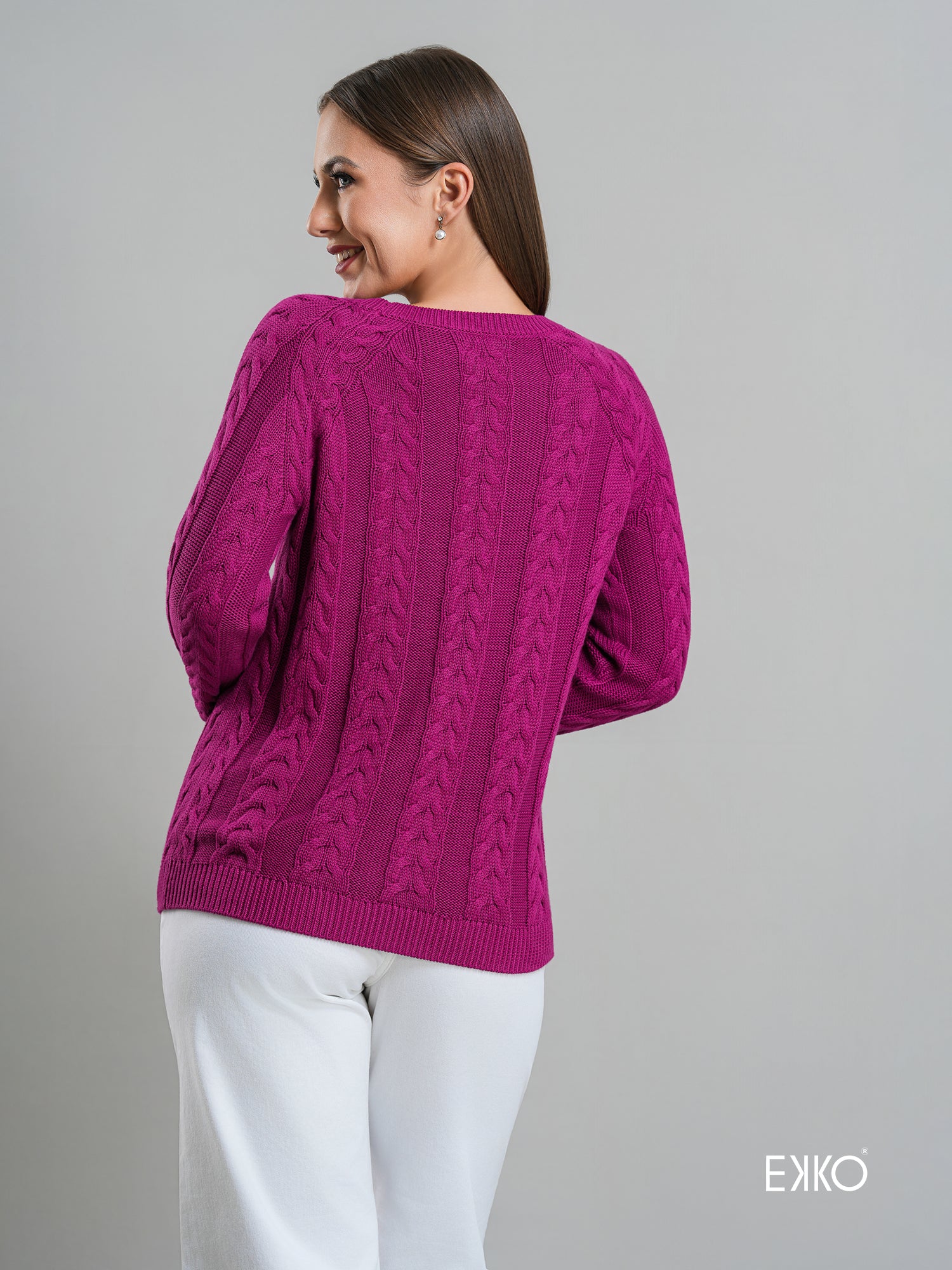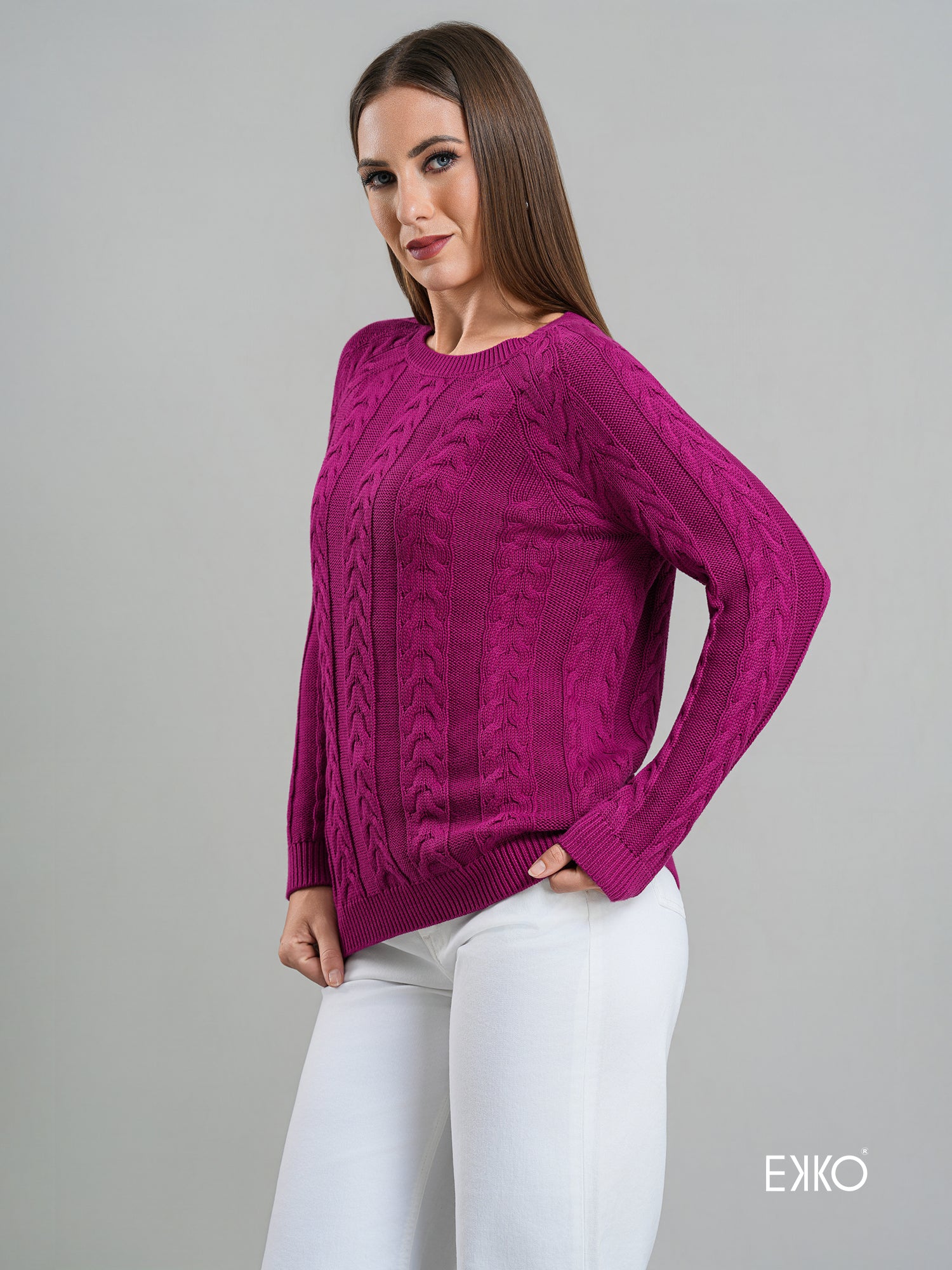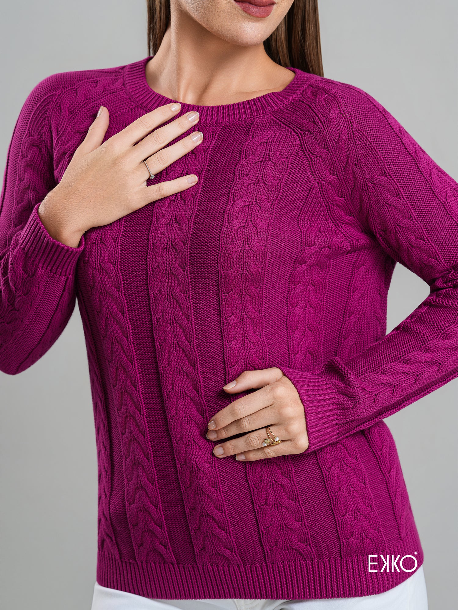 A comfy women’s sweater crafted from 100% cotton, featuring a classic crew neckline, long sleeves, and a regular fit. Designed in a soft purple tone for effortless everyday comfort and style.