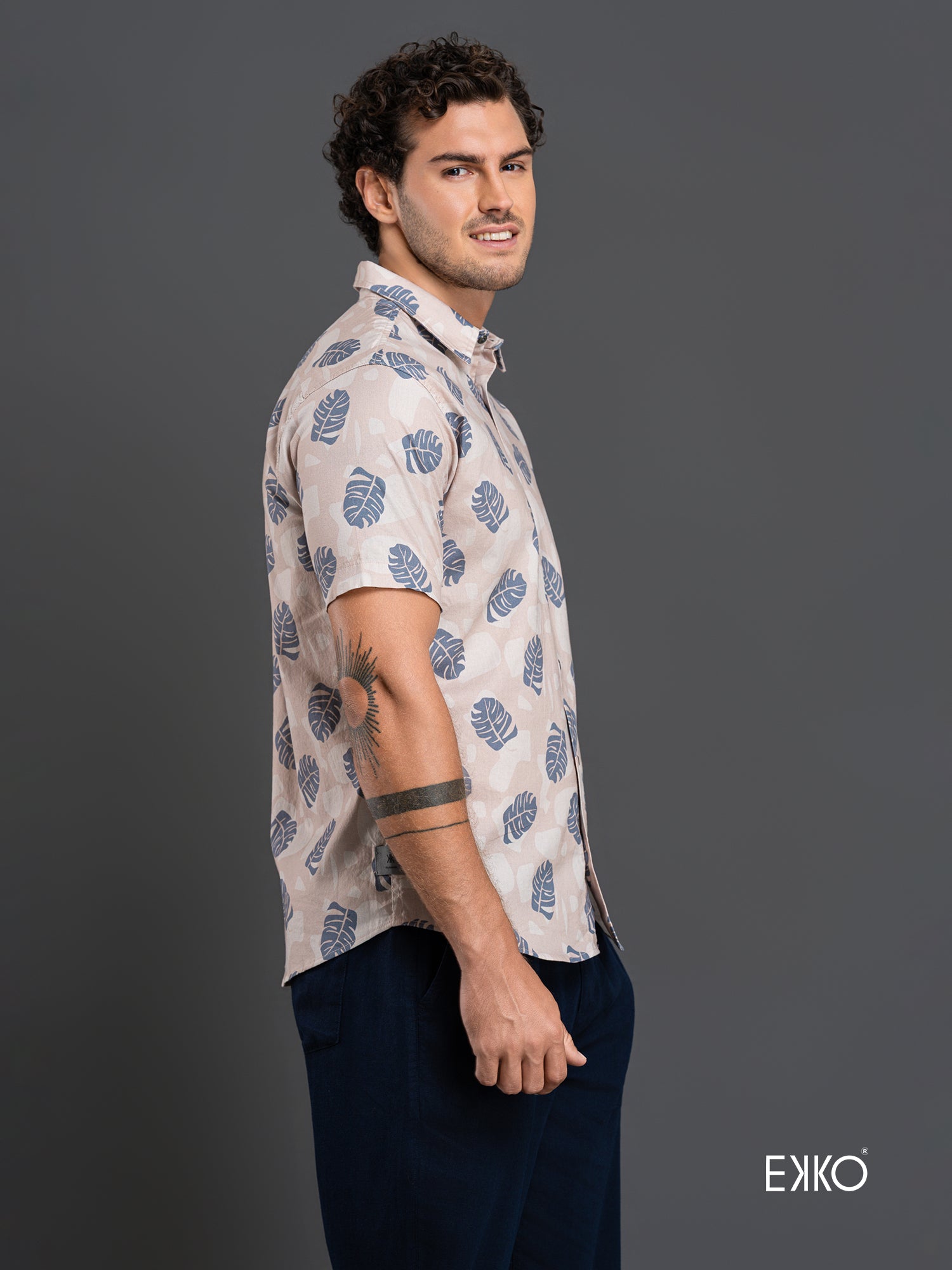 Cotton Blend Short Sleeve Shirt - EMSACS0836CESS1756